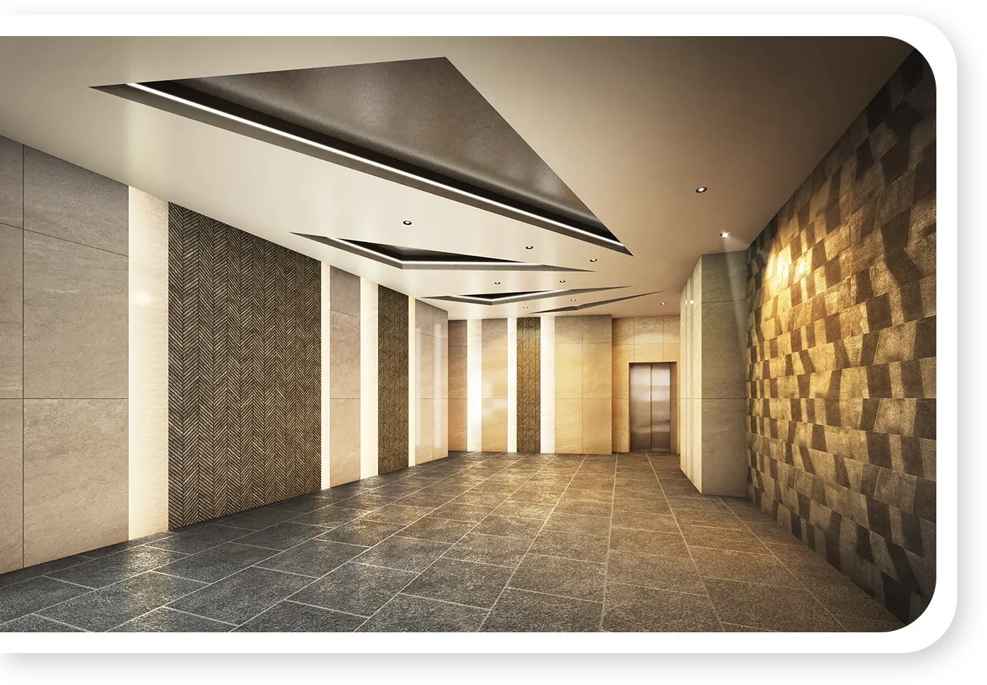 完成予想図ではイメージしづらいエントランスやホール等を実際にご覧いただき、雰囲気を体感できます。エレベーター動線や日常のゴミ捨てなど、暮らしをイメージできます。