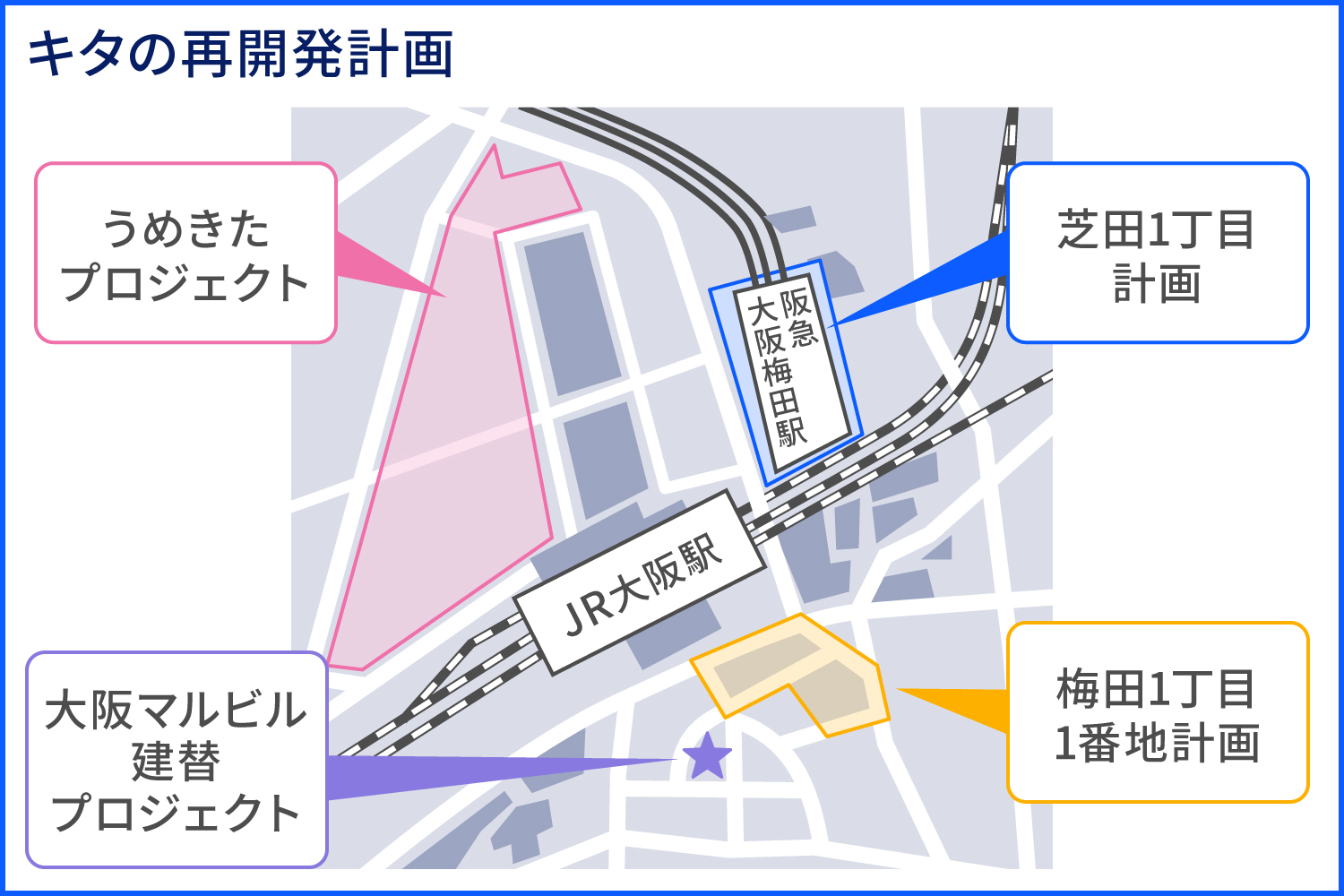 ※参考:阪急阪神ホールディングス.「「梅田ビジョン」 を 発表 ― 世界と関西をつなぐ「国際交流拠点」を目指す ―」. ,(2022-05-20).