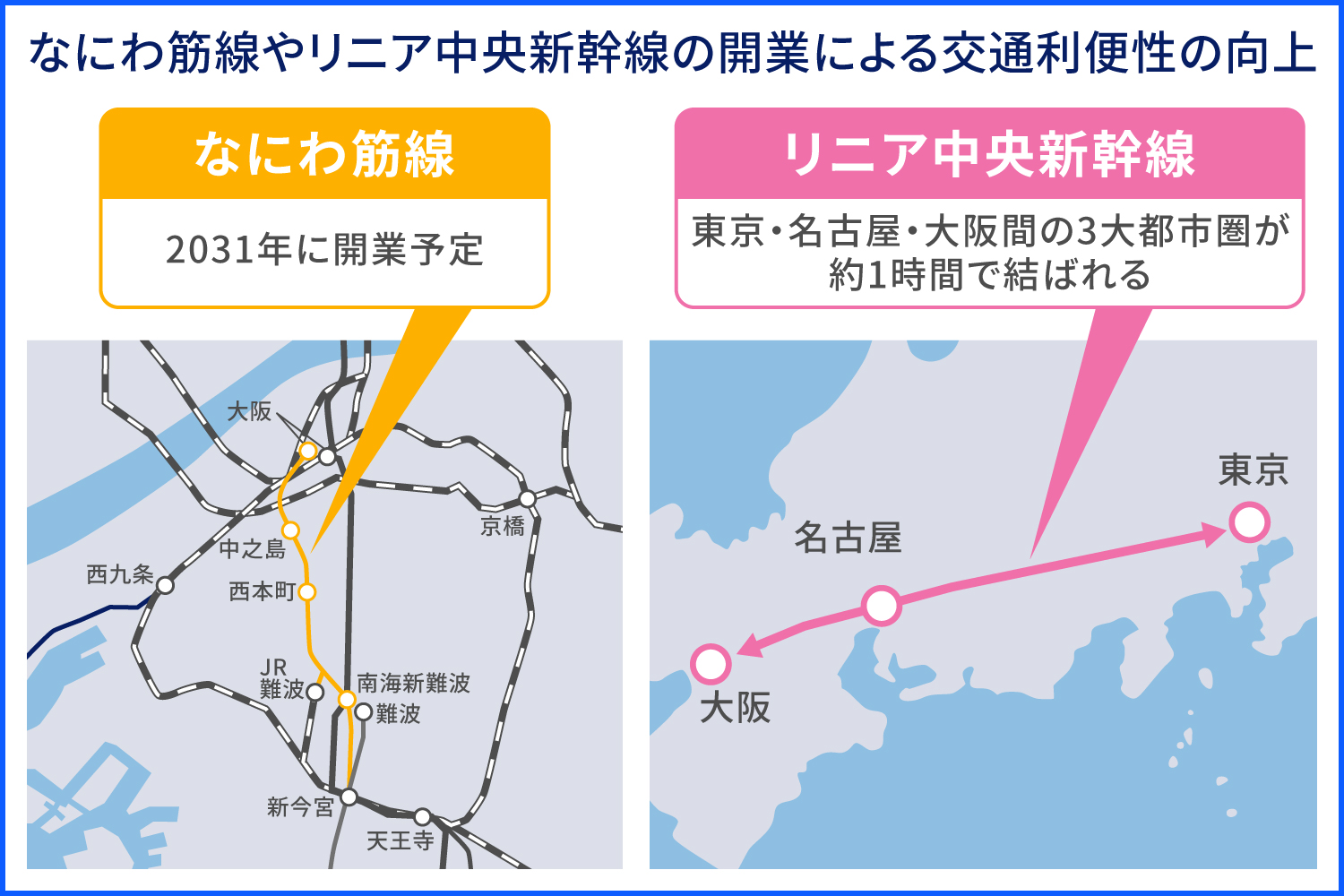 加えて北陸新幹線もすでに福井県敦賀まで開業しており、新大阪までの延伸が計画されています。計画が実現すれば、日本海側とのアクセスも強化され、さらに人の流れが活発になるでしょう。